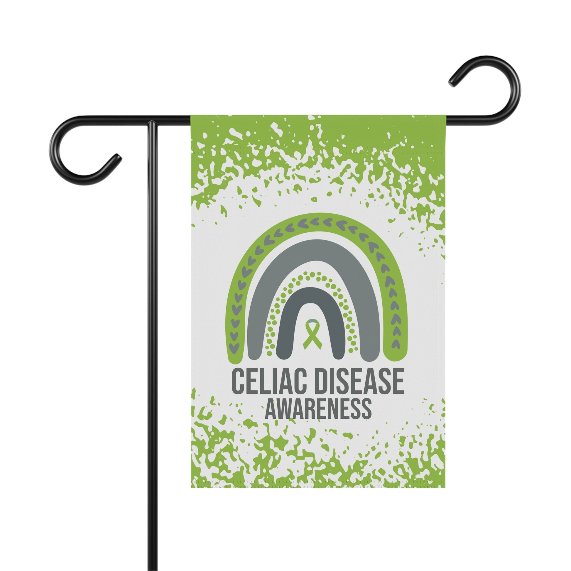 Celiac Disease Awareness Garden Flag | Welcome Sign | New Home | Decorative House Banner | Green Awareness Ribbon | Support