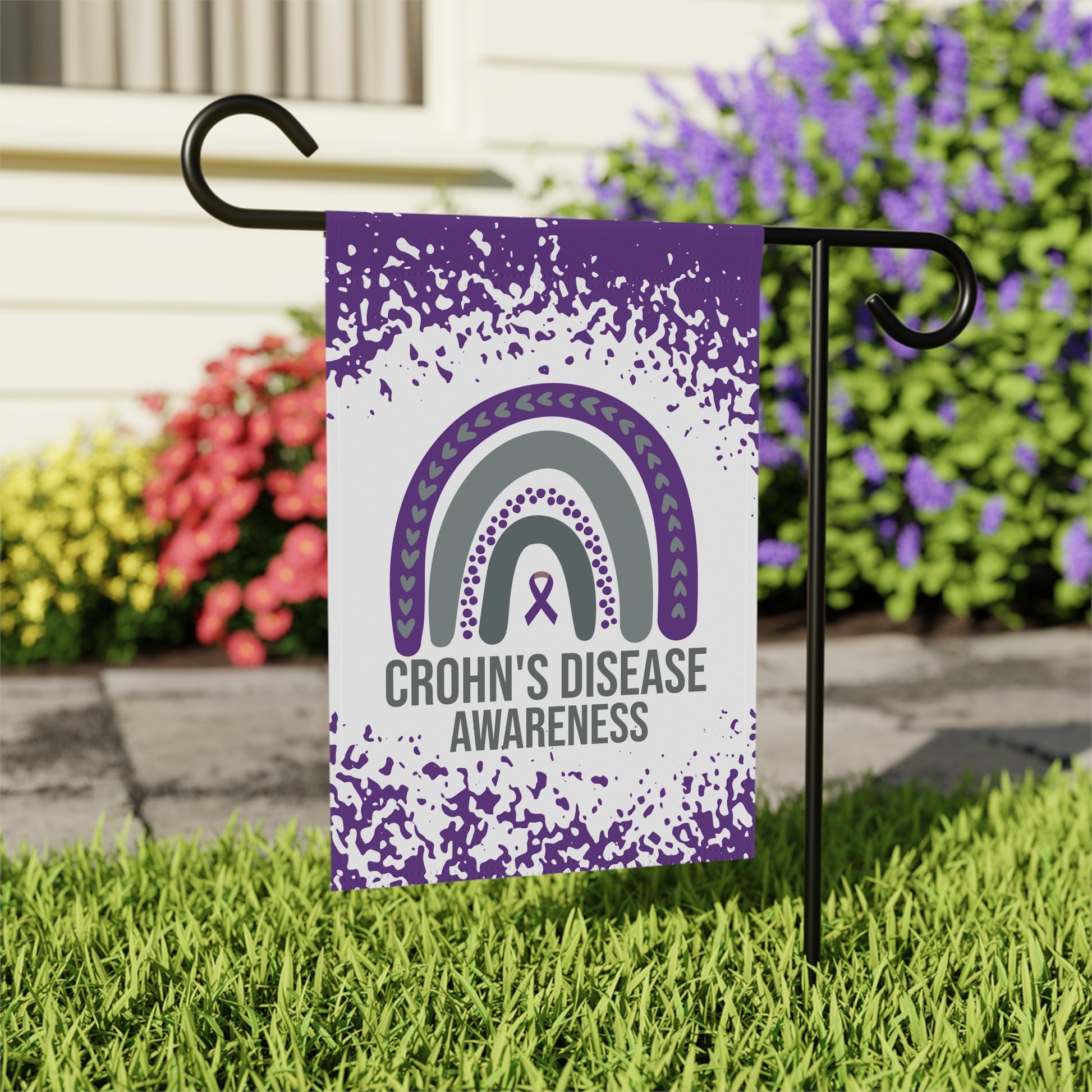 Crohn's Disease Awareness Garden Flag | Welcome Sign | New Home | Decorative House Banner | Purple Awareness Ribbon | Support